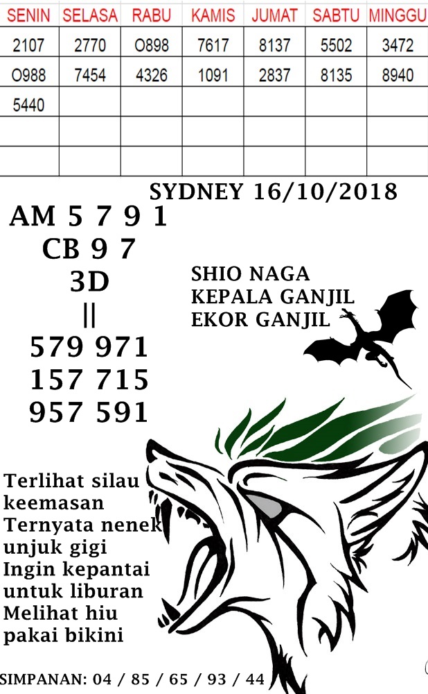 Kode Syair SYDNEY Selasa 16 Oktober 2018 GOsyair SEDIA KODE SYAIR SGP